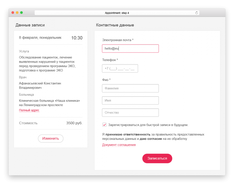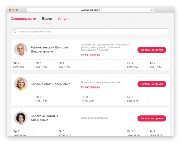 запись к конкретному врачу